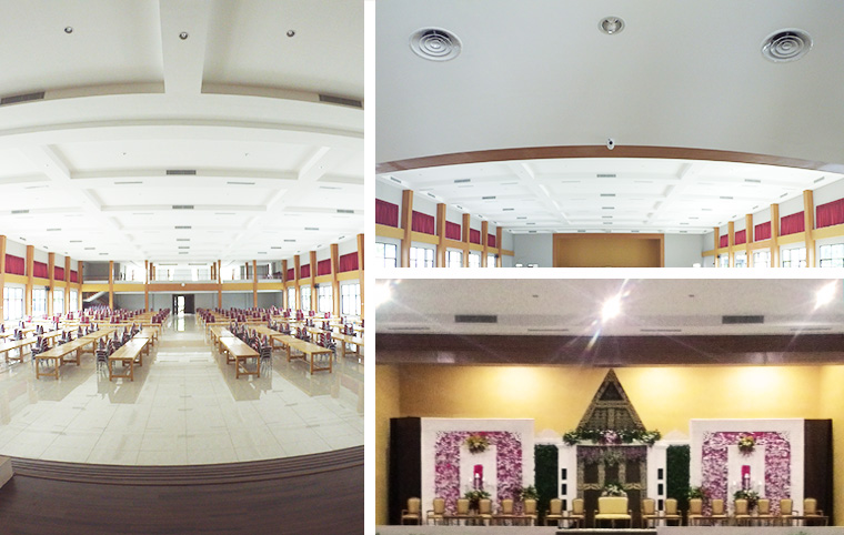 Gedung modern dengan ruangan-ruangan super luas untuk memenuhi kebutuhan-kebutuhan acara anda.